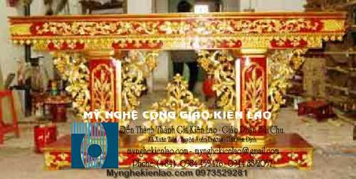 Giáo Xứ, Giáo họ, Bàn lễ, Thư Đài, Kiệu ... Sản phẩm qua quy trình kiểm tra chất lượng ngặt nghèo từ khâu thiết kế, chất lượng gỗ, chất lượng đục trạm, thếp vàng long son...